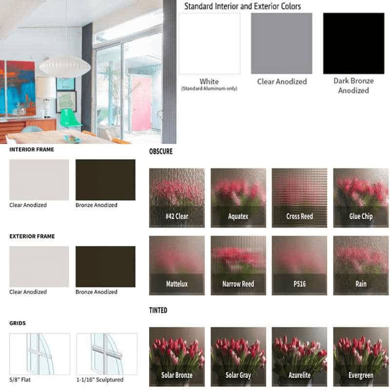 The aluminum series of patio doors from Milgard are available in four different colors: white, tan, clear, and black.